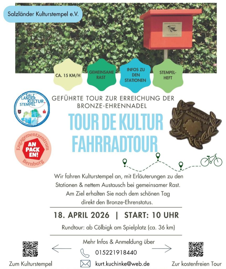 Ein weiteres Highlight vor der großen Salzlandradtour ist die Fahrradtour „Tour de Kultur“ am 18. April.
